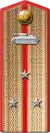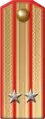 The introduction of new distinction insignia to the officer corps of the Red Army came by order of the Presidium of the Supreme Soviet on 6 January 1943.[4][5] Selected were two versions of shoulder straps or epaulettes, one for everyday uniforms and the second for field use (breadth 6 cm, length 14 to 16 cm, depending on body size). On 15 January 1943 the introduction of new uniforms was decided.[6]