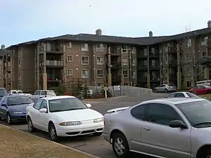 The neighbourhood's residential population lives in a mixture of rented apartments (38%) and apartment style condominiums (62%).[10] According to the 2001 federal census, all residential construction in the neighbourhood was built during the 1990s.[10]