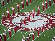 The Million Dollar Band (sometimes shortened to MDB) is the official marching band of the University of Alabama. Founded in 1912, the Million Dollar Band is the largest student organization at the University of Alabama.[1] The band performs during pregame and halftime of every home and neutral-site Alabama football game; it also supplies at least a pep band to every away football game, as well as home men's basketball, women's basketball, women's gymnastics, and volleyball games. In 2003, the band was awarded the Sudler Trophy, recognizing it as one of the top college bands in the United States.