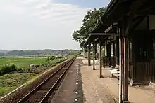 The station consists of one ground-level side platform serving a single bi-directional track. The station is unattended. The station building, which dates from 1928, received protection by the national government as a Registered Tangible Cultural Property in 2008.[2]