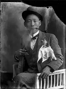 Between 1910 and 1920, the various photograph works he produced proved his penchant for creating documentary photography.[1] Up until the 1940s, his works include photographs of Yeondong Church, Western-style wedding ceremonies, scenic panoramic photographs of Seoul, and self portraits.[6] These include his a portrait of a young boy, the Magican Series, Yeondong Church, Wedding Ceremonies, and a mini-scale of a still life replicating Mount Geumgang. Overall, Ch'ung Sik's photography exhibit can be split into two types of styles.[6] The continual photography focuses on capturing places and events. This allowed Min to capture and experiment with the moments and perspective of everyday life and culture in a modernizing, yet colonized era.
