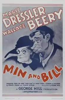 Min and Bill is a 1930 American pre-Code comedy-drama film, directed by George W. Hill and starring Marie Dressler and Wallace Beery. Adapted by Frances Marion and Marion Jackson from Lorna Moon's 1929 novel Dark Star, the film tells the story of dockside innkeeper Min's tribulations as she tries to protect the innocence of her adopted daughter, Nancy, while loving and fighting with boozy fisherman Bill, who resides at the inn. The picture was a runaway hit. In 1931, the studio released a Spanish-language version of Min and Bill, La fruta amarga,[2] directed by Arthur Gregor and starring Virginia Fábregas and Juan de Landa.[3]