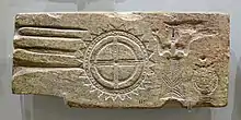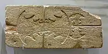 The Minoan Moulds of Palaikastro (Greek: Μήτρες του Παλαιοκάστρου Σητείας, romanized: Mitres tou Palaiokastrou Sitias) are two double-sided pieces of schist, formed in the Minoan period as casting moulds for plaques with figures and symbols. These include female figures with raised arms, labrys double axes (Λάβρυες, labryes) and opium poppy flowers or capsules, two double axes with indented edges, the Horns of Consecration symbol, and a sun-like disc with complex markings, which has been claimed by some researchers to be for making objects to use in astronomical predictions of solar and lunar eclipses.