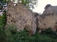 The overgrown ruins of Minsden chapel, in May 2004