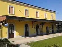 Mirandola railway station is a railway stop along the Verona-Bologna railway serving the city of Mirandola, in the province of Modena, in Emilia-Romagna, Italy. The station serves also the municipalities of Medolla, Cavezzo, San Possidonio, and Finale Emilia. Located in the village of Cividale, about 3 km from the town centre of Mirandola, th station is connected by a SETA shuttle bus.[2]