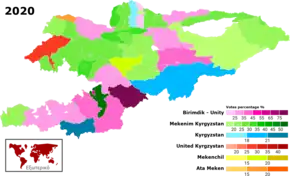 Parliamentary elections were held in Kyrgyzstan on 4 October 2020.[1] The results showed that pro-government parties had won a supermajority of seats. The election was subsequently annulled by the Central Election Commission during the 2020 Kyrgyzstan protests.[2]