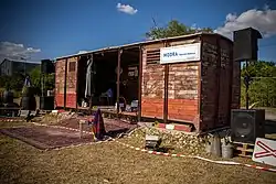 The Modranská železnica (English: Modra railway, Slovak pronunciation: ['mɔdranskaː 'ʐeleznitsa]) alebo Modra hlavná stanica (English: Modra main railway station, Slovak pronunciation: ['mɔdra 'hlavnaː 'stanitsa]) is cultural space[1] and imaginary railway station[2] located on a field between the collection yard and the winery on Dolná Street in Modra. It is a historic railway wagon from 1892 surrounded by railway artifacts.[3]