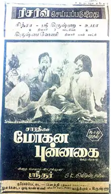 Mohana Punnagai (transl.The seductive smile) is a 1981 Indian Tamil-language romance film written and directed by Sridhar. The film stars Sivaji Ganesan, Geetha, Jayabharathi, Padmapriya, Anuradha and Anandhi. It was released on 14 January 1981.[1] The film was an average grosser in Tamil Nadu, but performed better in Sri Lanka.[2]
