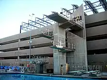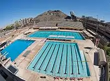 The complex consists of three pools, including an Olympic-size competition pool, and a diving platform; it has seating for 2,000. It is located on the ASU campus in Tempe, Arizona. The facility hosted the 1989, 1991, 1993, and 1998 Pac-10 Diving Championships, as well as the 1981, 1991, and 1999 NCAA Zone E Diving Championships.[4] The venue is regarded as one of the best collegiate aquatic centers in the nation.[4][5][2][6]
