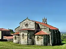 The Monastery of Santa María de Mezonzo is a Spanish religious building in Romanesque style in the parish of Santa María de Mezonzo, in the municipality of Vilasantar. Although it probably dates back to the time of the Kingdom of the Suebi, the current monastery was founded as a double convent by Abbot Reterico. According to Antonio López Ferreiro, the monastery was donated to the Asturian-Galician king Alfonso III el Magno in 870.[1] Justo Pérez de Urbel, after comparing the names of the confirmatory of several documents related to the monastery, thinks that the correct date is the one given by Hinojosa, that is, the year 930.[2][3][4]