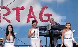 ![]() From left to right: Bahar Kızıl, Mandy Capristo, and Senna Gammour at the Cover Me charity concert in Cologne in December 2009 | |