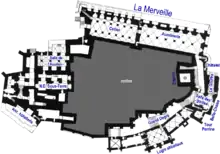 The "Merveille", located to the North of the church-abbey, contains a cloister, a dining-hall, a study room and a chaplaincy with an ideal floor plan for going from one to the other.