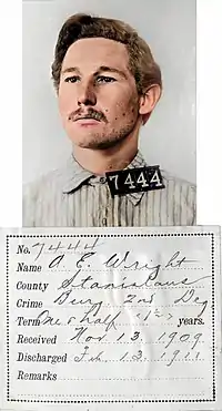 Archie Edwin Wright was born on April 20,[1] 1886 in the Dakota Territory.[2] In 1900, when he was 13 years old, his family migrated west by covered wagon along the Oregon Trail, crossing into California over the treacherous Donner Pass settling in California's northlands [3] to grow olives in Corning, California. After two years, the family had saved enough to sell the Corning homestead and purchase a section of land and farm in Washington state's Palouse region to grow wheat. The Wright's homesteading days were over.
