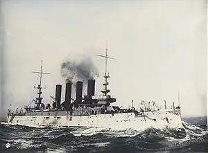 United States a first generation Armored Cruiser, with which he cruised the Pacific Ocean with the Great White Fleet. While the entire fleet was anchored in San Francisco Bay for a Naval Review there was an incident aboard the USS California. The USS California was to receive their ceremonial silver service by California's governor, the Secretary of Defense, and the Great White Fleet’s commanding officer, Admiral Uriel Sebree the commander-in-chief of the Pacific Fleet.