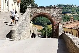 Unfortunately, some violent earthquakes significantly destroyed the original structure of the town, among them, the most violent ones were the one in 1352 (measuring 6 on the Richter scale)[5] and the last one, on April 26, 1917.[6] This is the reason why the medieval structure of the town only partially remains today and most of the buildings were built after 1917, like the town hall by Giovanni Michelucci, in the main square of the town.