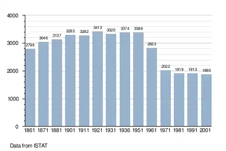 According to census data updated on Jan. 2017, the city's population was 1,742 while the Comune covers an area of 28.7 square kilometres (11.1 sq mi).[3]