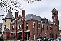 The Moody Street Fire Station is a historic fire station at 533 Moody Street in Waltham, Massachusetts. Built in 1890, it is one of two nearly identical fire stations designed by local architect Captain Samuel Patch. (The other is the central fire station on Lexington Street, listed in the Central Square Historic District.) It was built during the South Side's rapid development due to the growth of the Waltham Watch Company, and is an excellent example of Queen Anne/Romanesque Revival styling. It was gutted by fire in 1900, and reopened in 1901. The station underwent a full renovation with a new station built next door and connected to the existing station in 2019.[2] On June 21, 2021, the fire station reopened after a nearly $10 million renovation.