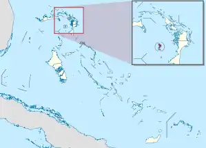 Moore's Island is a cay, 28 miles (45 km) to the west of the main island of Abaco. It is approximately 7 miles (11 km) long and 3.5 miles (5.6 km) wide. It has two settlements, Hard Bargain, which is the capital, and the other settlement is the Bight. The population has been reported as 950.[1]
