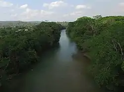 The Mopan River is a river in Central America spanning the Petén Department of Guatemala and the Cayo District of Belize. It merges with the Macal River at Branch Mouth, Belize, forming the Belize River, which ultimately discharges into the Caribbean Sea. The drainage area of the combined watershed is 9,434.2 km2 (3,642.6 sq mi).[1] Tributaries of the Mopan include Chiquibul Branch, Ceiba Grande, Salisipuedes, and Delores.[1][2]