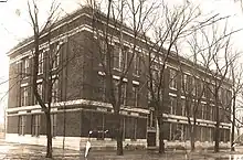 Illinois law said that property set aside for schools at the time of annexation had to be used for that purpose. When it became evident that annexation would occur, Morgan Park raised the funds to buy land and begin building a high school. Annexation became reality in 1914, and the Morgan Park schools came under the jurisdiction of Chicago on April 24 of that year. It took another two years for the high school building to be completed, but finally, the doors opened in January 1916. A number of students who had dropped out were attracted by the opportunities of the new school and planned to re-enter. The first class graduated from the new high school on June 22, 1916. There were 37 four-year program graduates and six two-year program graduates.[6] In the following decade, the school was expanded to include a Social Room, gymnasium, auditorium (Blackwelder Hall), pool, garages, and around 25 classrooms. The extra expansion was completed in 1926 and is located facing where Pryor Avenue once existed.[5]