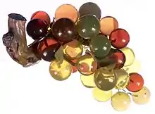 Relief Society crafts are one way that folk art is disseminated between Mormons. In 1963, crafter Ruby Swallow made resin grapes using old Christmas ornaments as molds. She presented the craft at a stake homemaking activity, and soon after taught her technique in a local craft store. The craft remained unusually popular, and many homes in the Intermountain West had a set by the 1970s. Eleanor Zimmerman, who helped popularize the grapes, said that the craft was popular because it was handmade but "looked store-bought."[28]: 79 Mark L. Staker, a curator for the Museum of Church History and Art, believes that the staying power of resin grapes is partially because they were made as a community, and also because Relief Society Magazine began emphasizing arts and crafts in 1963.[28] One popular genre of crafts turns inexpensive utilitarian objects into decorative ones.[29]