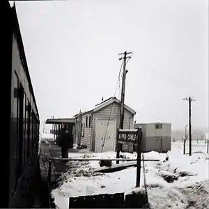 By 1926, Morris Motors, based in Cowley since 1913, employed some 4,000 workers on their plant which covered some 80 acres (320,000 m2) and produced 1,000 cars per week. Morris decided to concentrate the packing of cars for export at Cowley, the bulk of which would be moved to port by rail. Two sidings were installed in March 1926 to serve the adjacent Pressed Steel Company factory and five more were added in July 1928 for Morris Motors.[8] Around the same time, Morris proposed to the GWR to open a passenger and goods station on the site of Garsington Bridge Halt and the new Morris Cowley station subsequently opened to passengers on 24 September 1928 and to goods on 10 December 1928.[9] A new signal box was opened in October 1928 to control the sidings. Basic passenger facilities were provided: a single timber platform 400 feet (120 m) and 12 feet (3.7 m) wide, together with a parcels and booking office, booking hall and toilets. Access to the station was had by a footway leading up from Cowley Road.[10] As production at the Cowley plant increased, so the freight facilities were extended. Car trains ran to Brentford Dock for export, reversing at Kennington junction, whilst a daily train ran from Bordesley. Special services were laid on for the workers, beginning with a through train that departed Banbury at 6:00 am, arriving at Cowley at 7:00 am. The return working left Cowley at 5:08 pm and reached Banbury at 6:06 pm. On Saturdays, a service left Cowley at 12:10 pm and ran to Kingham where it connected with a Banbury train.[6]
