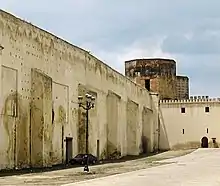 The gardens fell into ruin and eventually disappeared in subsequent centuries, most likely during the neglect of Fes throughout the Saadian period (16th-17th centuries), but traces of its structures have survived to modern times.[2][1] The most prominent remains are the octagonal towers of Bab Segma, once the entrance gate to the gardens, but some faint remains of the water basins are also documented.[4] The site of the garden is now mostly occupied by the large Bab Segma Cemetery (probably dating from the time of Moulay Rashid), inside of which the outline of some of the original basins can still be discerned.[4][1] The noria reportedly disappeared in 1888, leaving only remains of its stone base.[5]: 98 Some modern authors[6][3] sometimes identify the waterwheel on the western edge of the Jnan Sbil Gardens with the remains of the great Marinid noria, but other authors have rebuked this by observing that the Grand Noria would have been far larger and would have been located where the Dar al-Makina currently stands.[4][1]
