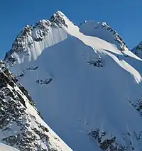 Mount Fitzsimmons is a 2,603-metre (8,540-foot) glacier-clad peak located in the Garibaldi Ranges of the Coast Mountains, in Garibaldi Provincial Park of southwestern British Columbia, Canada. It is the third-highest point of the Fitzsimmons Range, which is a subset of the Garibaldi Ranges.[3] It is situated 15 km (9 mi) southeast of Whistler, and its nearest higher peak is Mount Benvolio, 0.5 km (0 mi) to the west-southwest.[3] The Diavolo Glacier spreads out below the southeast aspect of the summit, and the Fitzsimmons Glacier descends the northwest slopes. Precipitation runoff from the peak and meltwater from its glaciers drains into tributaries of the Cheakamus River. The first ascent of the mountain was made on August 19, 1924, by a party of the British Columbia Mountaineering Club.[4] The peak was named for prospector James Fitzsimmons, who built a trail along Fitzsimmons Creek in an effort to haul supplies to a small copper mine he staked and worked.[4] The mountain's name was officially adopted on September 2, 1930, by the Geographical Names Board of Canada.[2]