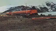 View of Corbeta Uruguay base with Mount Larsen in the background