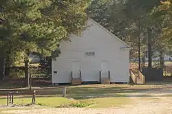 The Mount Olivet Methodist Church is a historic church building located on the Cleveland County, Arkansas fairgrounds near Rison, Arkansas. It is a simple rectangular structure built c. 1875, with twin entrances on one of the gable ends. The long sides of the church have four windows, while the rear wall has two, and the exterior has minimal decoration. The interior is a single chamber, again with minimal styling. The church was rescued from demolition in 1975 by the Cleveland County Historical Society, which moved it to the fairgrounds to be part of a display recreating a 19th-century Arkansas village.[2]