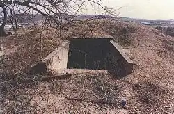 No.2 Station was Townsville's largest and most modern anti-aircraft battery when completed. Hardly a mountain, more a small hill, the site included four concrete ammunition bunkers, four 3.7" guns of the latest design, and an underground command post and plotting room. The standard (static) HAA gun position used in Queensland during World War II had four hexagonal gun positions, with a semi-underground command post in the centre of the arc of the guns and a magazine for each gun, with all elements built with reinforced concrete. At Mount St John, the 3.7" gun positions consisted of a surface concrete platform, surrounded by a protective earth wall (most of the surrounding earth walls have since been removed). Another permanent type of HAA position used in Queensland had the emplacements sunk into the ground, with concrete walls around the pit, complete with ammunition recesses.[1]