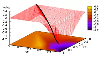 ![]() Vibrations of a string under a moving inertial force (v=0.1c); c is the wave speed. ![]() Vibrations of a string under a moving inertial force (v=0.5c); c is the wave speed. |