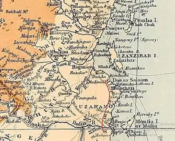 - ↑ Krapf quotes the British missionary Last “ The coast-line opposite Zanzibar and inland for two days' march, about twenty miles,is called Mrima."(Krapf, Ludwig: A dictionary of the Suahili language, London 1882, "Mrima"