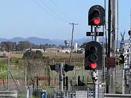 Mulgrave railway station is on the Richmond railway line. It is four stations from the terminus station at Richmond. Mulgrave station is 53 kilometres (33 mi) from Sydney's Central Station, which takes approximately 1 hour 6 minutes to travel by train during peak hour.[5] The station along with the arrival of a steam train features in The Seekers at Home TV special, 1968. Filmed as the setting for the song "Angeline is always Friday", steam hauled services ceased to operate shortly afterwards.