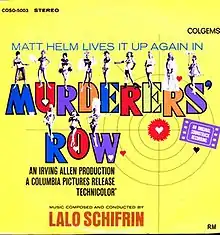 Murderer's Row is a soundtrack album to the motion picture of the same name by Argentine composer, pianist and conductor Lalo Schifrin recorded in 1966 and released on the Colgems label.[1] As with The Silencers, due to contractual arrangements Dean Martin's image is not on the album cover, nor is there any songs sung by him. His version of "I'm Not The Marrying Kind" that appears in the film is his Reprise album Happiness Is Dean Martin.[2]