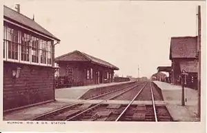 Murrow East railway station was a station in Murrow, Cambridgeshire. It was on the Midland and Great Northern Joint Railway line between Wisbech and Peterborough. There was another station in the settlement, Murrow West railway station, on the Great Northern and Great Eastern Joint Railway.