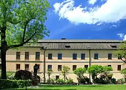 In 1805 the emperor Francis I invited to Cieszyn his two allies - tsar Alexander I, the grand duke Constantine, marshal Kutuzov and duke Biron of Courland. This was the time when in the Palace of the Larisch family, especially in the so-called Egyptian Hall, concerts and balls were organised for the guests of Francis Joseph. In 1809 the palace became the seat of Albert Duke of Saxony and Teschen, and then the archduke Karl Ludwig Habsburg. In 1817 the palace hosted the emperor Francis I and his wife Caroline Augusta and their retinue. In 1831 the palace was sold to duke Philip Ludwig Saint Genois d’Anneaucourt, who in 1839 sponsored the construction of the third wing of the palace designed by a Vienesse architect Joseph Kornhäusel. In this wing a circular stable was designed (currently a café) over which a ballroom called a Roman Hall was located.[1]