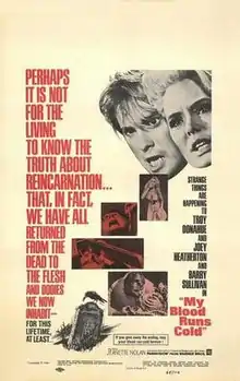 My Blood Runs Cold is a 1965 American neo noir dark thriller film starring Troy Donahue, Joey Heatherton and Barry Sullivan. It was directed by William Conrad. It was the second of three thrillers Conrad made for Warner Bros. A young woman falls in love with a man who may be insane.[2]