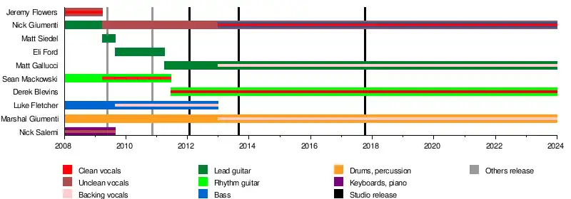 - Nick Giumenti – unclean vocals (2009–present), clean vocals, bass (2013–present), lead guitar (2008–2009)