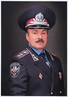 Mykhailo Mykhailovych Tsymbaliuk (Ukrainian: Михайло Михайлович Цимбалюк; born 21 November 1964) is a Ukrainian retired lieutenant general of the Militsiya, politician, and legal professor currently serving as a People's Deputy of Ukraine on the party list of Batkivshchyna since 29 August 2019. Previously, he served as Governor of Lviv Oblast from 21 December 2010 to 2 November 2011 and as Governor of Ternopil Oblast on two occasions, first from 17 July 2004 to 19 January 2005 and later from 16 June to 21 December 2010.