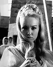 A "veteran of cinema"[8] who started as one of the blond sex symbols of the 1950s and 1960s,[9][10][11] she managed to avoid typecasting by exploring many film genres including thrillers, westerns, comedies, swashbucklers, period films and even pepla, such as Romulus and the Sabines (1961) opposite Roger Moore or Gold for the Caesars (1963).