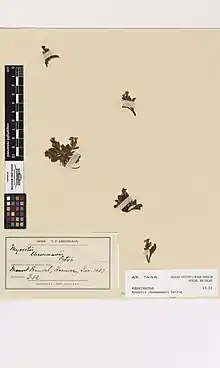 The holotype specimen of Myosotis elderi is lodged at herbarium WELT at the Museum of New Zealand Te Papa Tongarewa (WELT SP002648).[6][7]