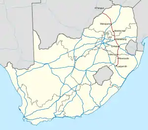 - ↑ Falkner, John (May 2012). South African Numbered Route Description and Destination Analysis (Report). National Department of Transport. pp. 25–26. Archived from the original on 6 June 2014. Retrieved 12 August 2014.