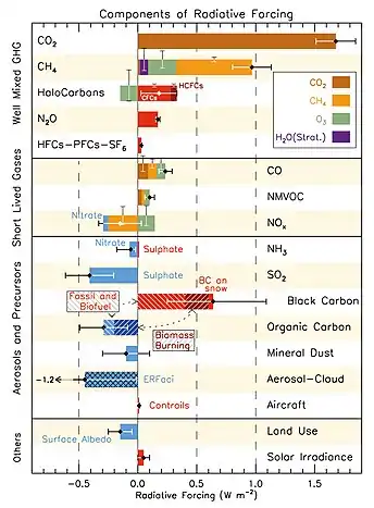 - ↑ "Aerosol radiative forcing and climate", Atmospheric Aerosol Properties, Springer Praxis Books, Springer Berlin Heidelberg, 2006, pp. 507–566, doi:10.1007/3-540-37698-4_9, ISBN 9783540262633