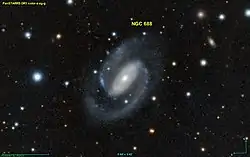 NGC 688 is a barred spiral galaxy[3][4] with starburst activity[5][6] located 190 million light-years away[6] in the constellation Triangulum. It was discovered by astronomer Heinrich d'Arrest on September 16, 1865[5] and is a member of the galaxy cluster Abell 262.[7][8][9]