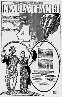 Nallathambi is a 1949 Indian Tamil-language film starring and produced by N. S. Krishnan. The film's script was written by C. N. Annadurai (later chief minister of Tamil Nadu). This film marked Annadurai's debut in Tamil films.[1][2][3][4] The movie is an adaptation of 1936 American movie Mr. Deeds Goes to Town.