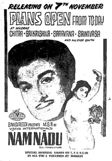 Nam Naadu (transl. Our country) is a 1969 Indian Tamil-language action drama film directed by C. P. Jambulingam, starring M. G. Ramachandran and Jayalalithaa. It is a remake of the 1969 Telugu film Kathanayakudu. The film was released on 7 November 1969.