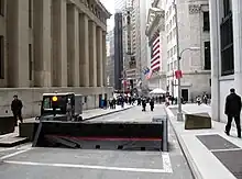 In 1931, the BMT Nassau Street Line (present J and Z trains) of the New York City Subway was extended under Nassau Street, with stops at Fulton Street and Broad Street.[3] Nassau Street is only 34 feet (10 m) wide, and the subway floor was only 20 feet (6.1 m) below building foundations. As a result, 89 buildings had to be underpinned to ensure that they would stay on their foundations. The whole cost of the construction of the segment was $10.072 million for the 0.9 miles (1.4 km)-long extension, or $2,068 a foot, which was three times the normal cost of construction at the time.[4]