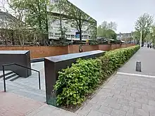 Further monuments and a museum commemorating the Holocaust are the nearby Auschwitz Monument by Jan Wolkers in the Wertheim Park to the east of the Holocaust Names Memorial, and the upcoming National Holocaust Museum at Plantage Middenlaan 27, Amsterdam, opening in September 2023.[5] At the former Westerbork transit camp (Dutch: Kamp Westerbork) in Hooghalen, Drenthe, there is the 102.000 Stones Monument (Dutch: De 102.000 stenen), with a stone without a name for each victim.[6] On the internet a searchable database of all Dutch Jewish victims is available as Joods Monument (Jewish Monument).[7]