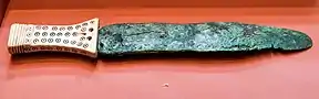 The pottery from this period is marked by geometric lines and new pottery forms. Ashes and burnt bones found in intact pots are evidence of cremation ceremonies, a practice which seems to have been introduced during this period. Body ornaments made of fish-bones, shell and faience, as well as daggers and axes, discovered in Bronze Age burial sites, accompanied the cremated remains.